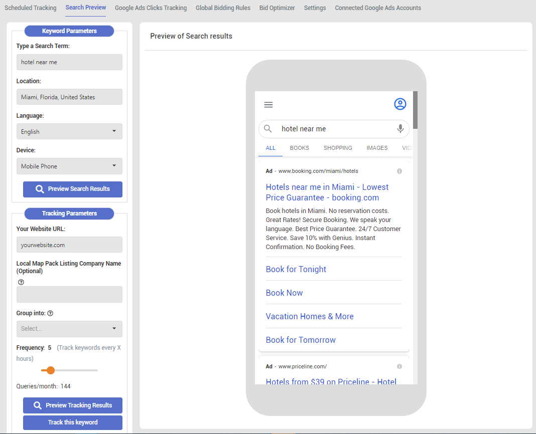 After filling the track parameters, you can click Preview to preview the result, or click Track this keyword to track it.